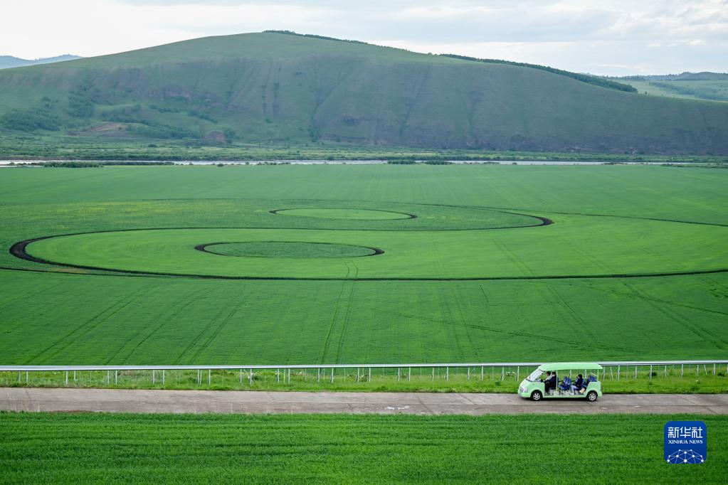 6月28日,游客在额尔古纳市蒙兀室韦苏木境内的奥洛契庄园乘车游览。