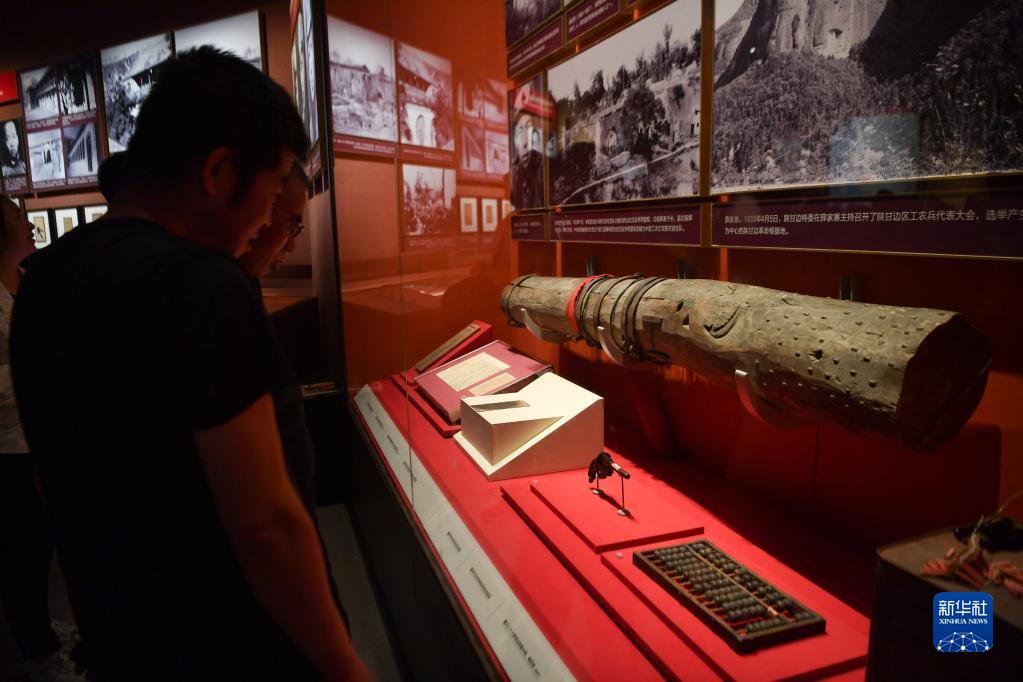 6月30日,观众在延安革命纪念馆观看《伟大历程——中共中央在延安十三年历史陈列》。