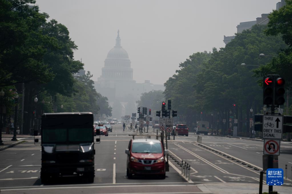 6月29日,在美国首都华盛顿,国会大厦笼罩在烟雾中。