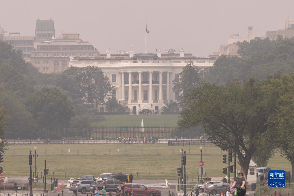 6月29日,在美国首都华盛顿,白宫笼罩在烟雾中。