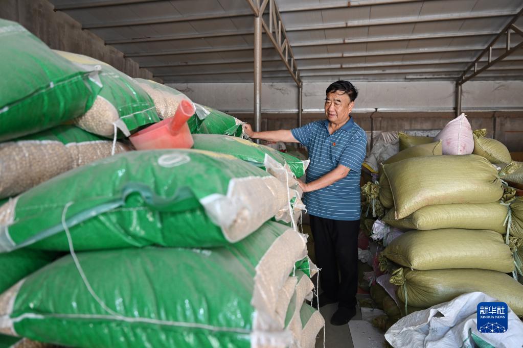 6月8日,徐淙祥在太和县淙祥现代农业种植专业合作社整理大豆种子,为夏种做准备。