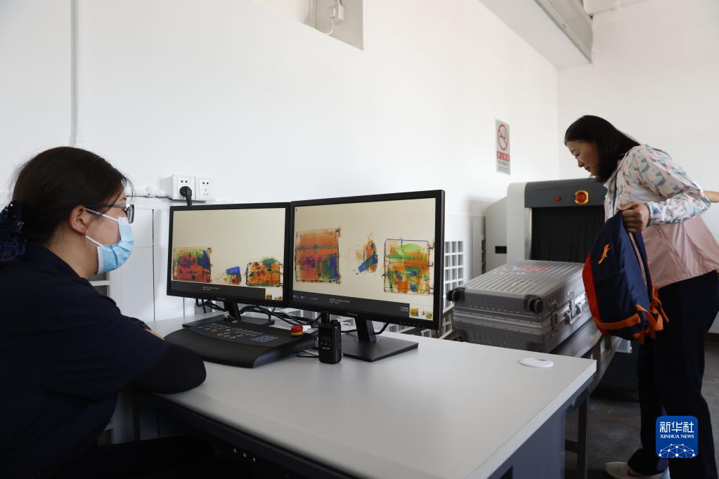 6月30日,工作人员在故宫观众服务中心对游客寄存的行李进行安检。