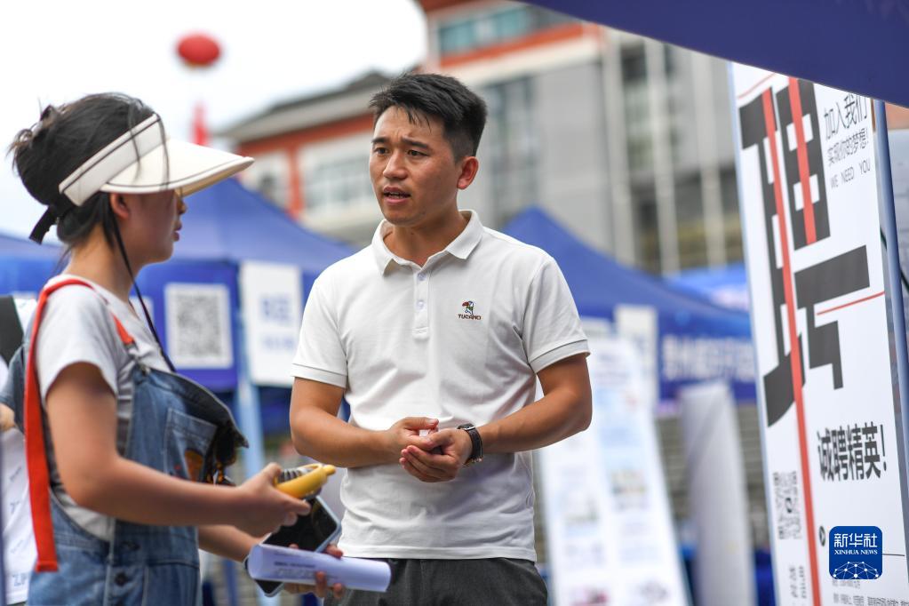 当日,贵州省黔东南州2023年“职引黔程·点亮未来”高校毕业生大型招聘会在贵州省黔东南民族职业技术学院举行,来自贵州贵安新区及粤港澳大湾区等地的122家企业为黔东南州高校毕业生提供近4000个就业岗位。