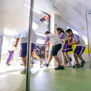 6月30日,在江苏省泰州市安全技能实训基地,消防救援人员给学生们讲解消防救援绳结的使用方法。