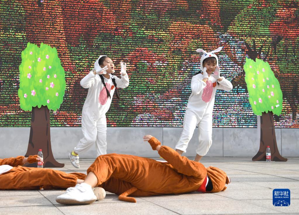 6月30日,广西南宁市玉兰路小学学生表演防溺水情景剧。