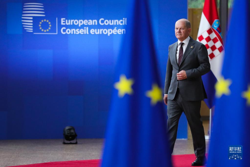 6月29日,在比利时布鲁塞尔,德国总理朔尔茨抵达欧盟总部准备出席欧盟峰会。