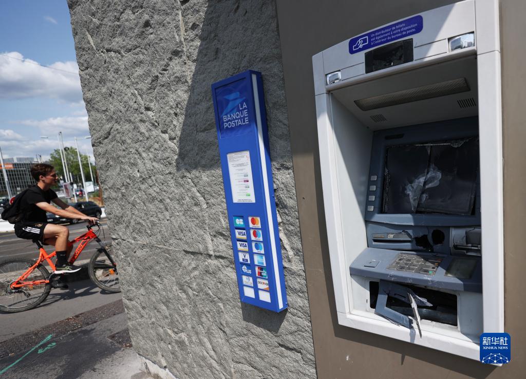 6月30日,在法国上塞纳省楠泰尔市,一个提款机被示威者毁坏。