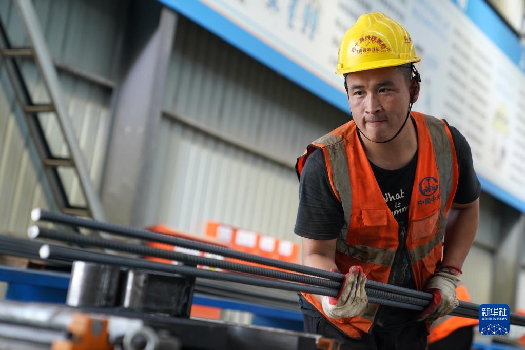6月30日,施工人员在中铁上海工程局蓝田制梁场加工预制箱梁使用的钢筋。