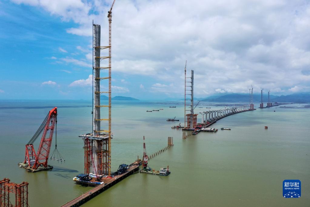 2023年1月9日,高栏港大桥东主塔在跨海通道大桥5座主塔中率先封顶。2023年6月19日,中交路建黄茅海跨海通道项目部在海中5座主塔率先完成首榀钢箱梁架设,标志着项目转入上部结构施工阶段。