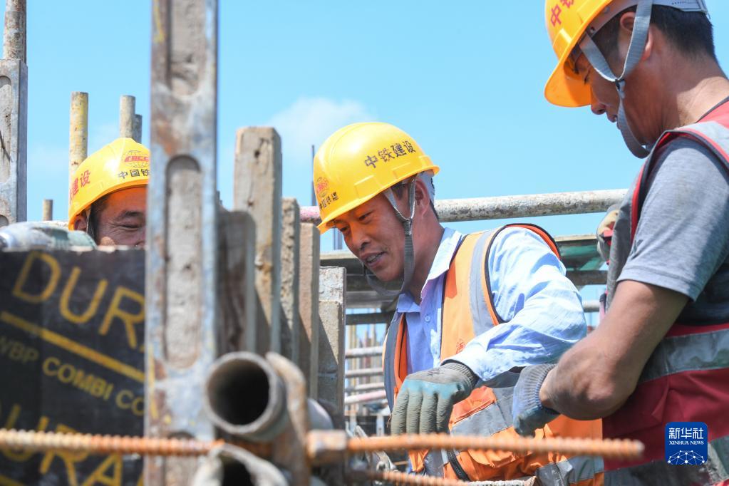 6月30日,工人在铁力站建设施工现场作业。