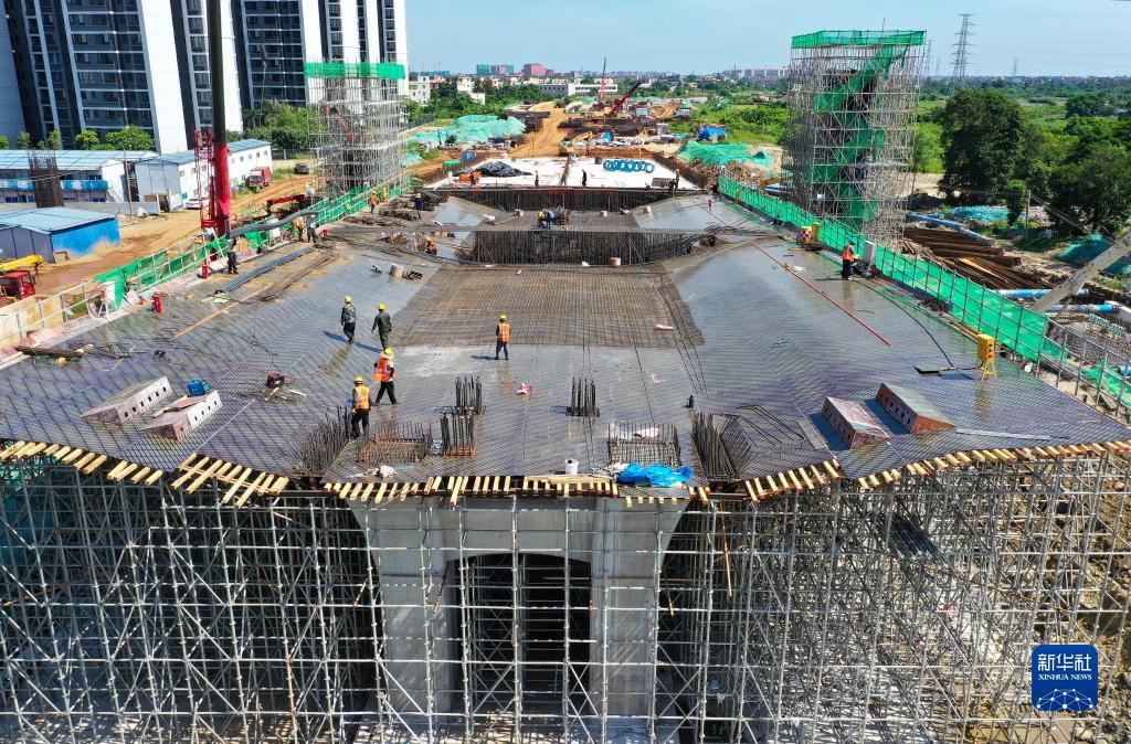 这是7月1日拍摄的海口江东新区快速通道项目(无人机照片)。