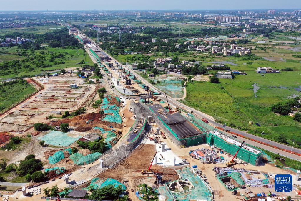 这是7月1日拍摄的海口江东新区快速通道项目(无人机照片)。