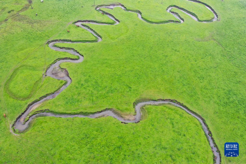 当下,甘肃省定西市岷县狼渡滩草原水草丰茂,曲折蜿蜒的河流静静流淌,岸边牛羊漫步,原野骏马驰骋,构成一幅壮美的画卷。