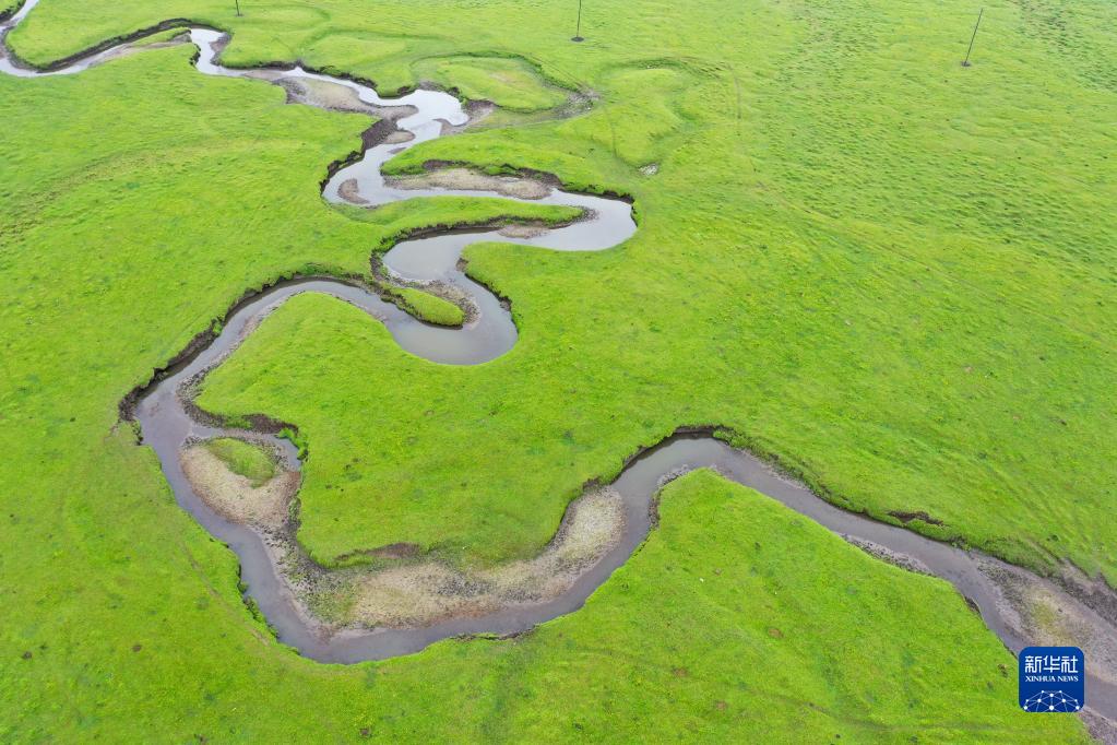 当下,甘肃省定西市岷县狼渡滩草原水草丰茂,曲折蜿蜒的河流静静流淌,岸边牛羊漫步,原野骏马驰骋,构成一幅壮美的画卷。