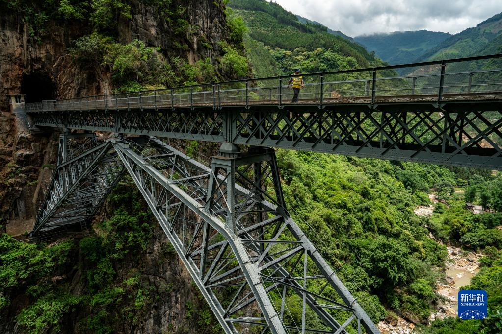 滇越铁路是云南省第一条铁路,米轨火车已在这条铁路上穿行百余年。在滇越铁路屏边县段,有一座标志性的“人字桥”,在悬崖峭壁间挺立百余年。