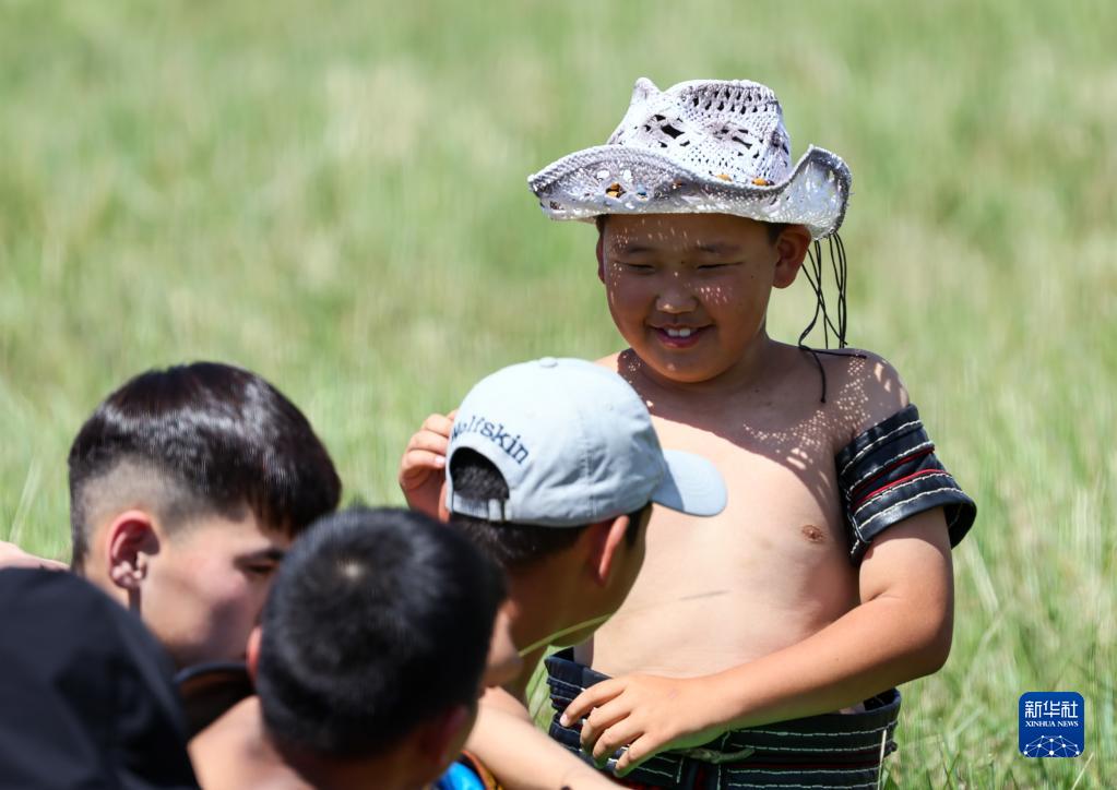 7月1日,参加搏克比赛的小选手们准备上场。