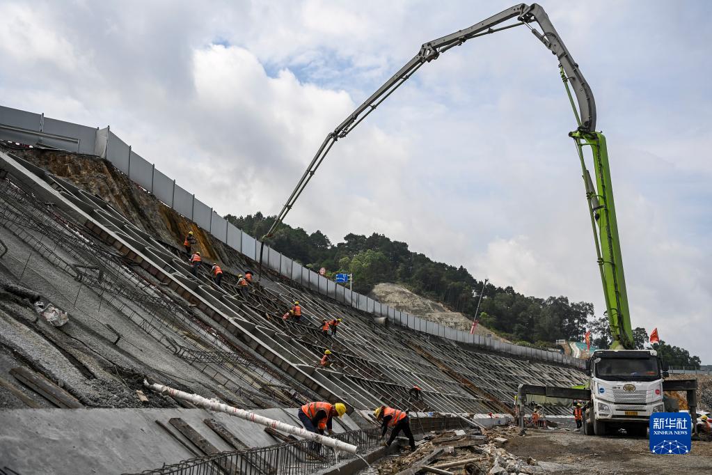 连日来,在位于广西灵山县的平陆运河马道枢纽建设现场,工人们加紧施工,建设项目正按计划有序推进。