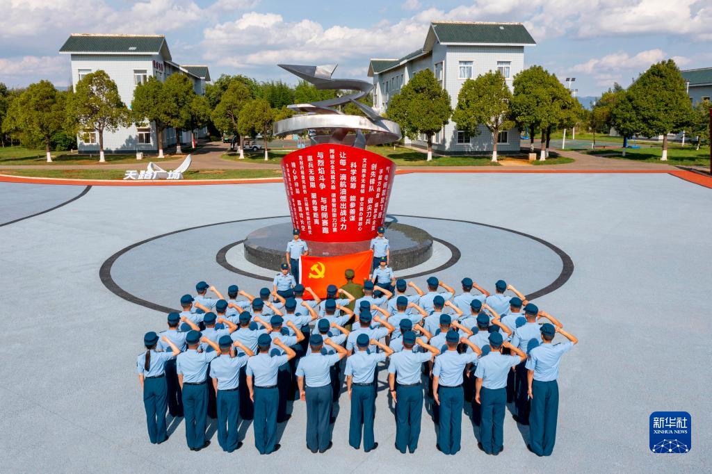 南部战区空军某部开展“薪火相传,请党放心”主题党日活动(6月29日摄)。