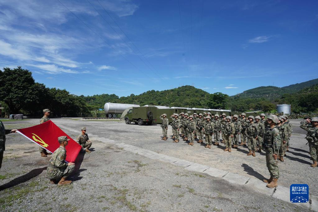 联勤保障部队某部组织官兵在演训期间重温入党誓词(6月30日摄)。