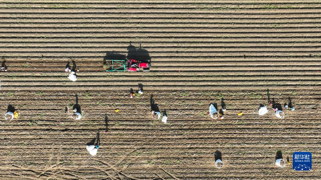 7月1日,河北省唐山市丰南区大新庄镇大赵庄村农民在田间收获马铃薯。