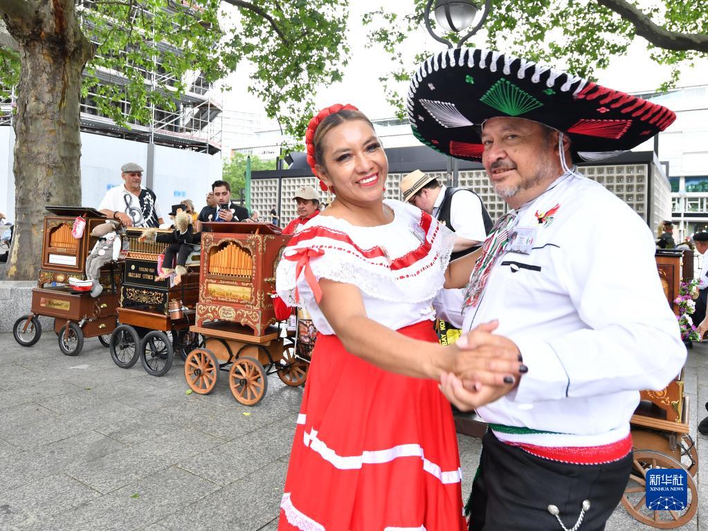 7月1日,人们在德国柏林国际手摇风琴艺术节上跳舞。新华社记者 任鹏飞 摄