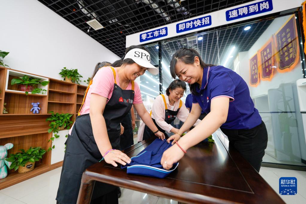 7月2日,河北省唐山市路南区初心家园零工市场服务站的工作人员在为求职者进行家政技能培训。