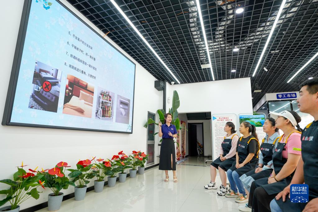 7月2日,河北省唐山市路南区初心家园零工市场服务站的工作人员在为求职者进行家政技能培训。