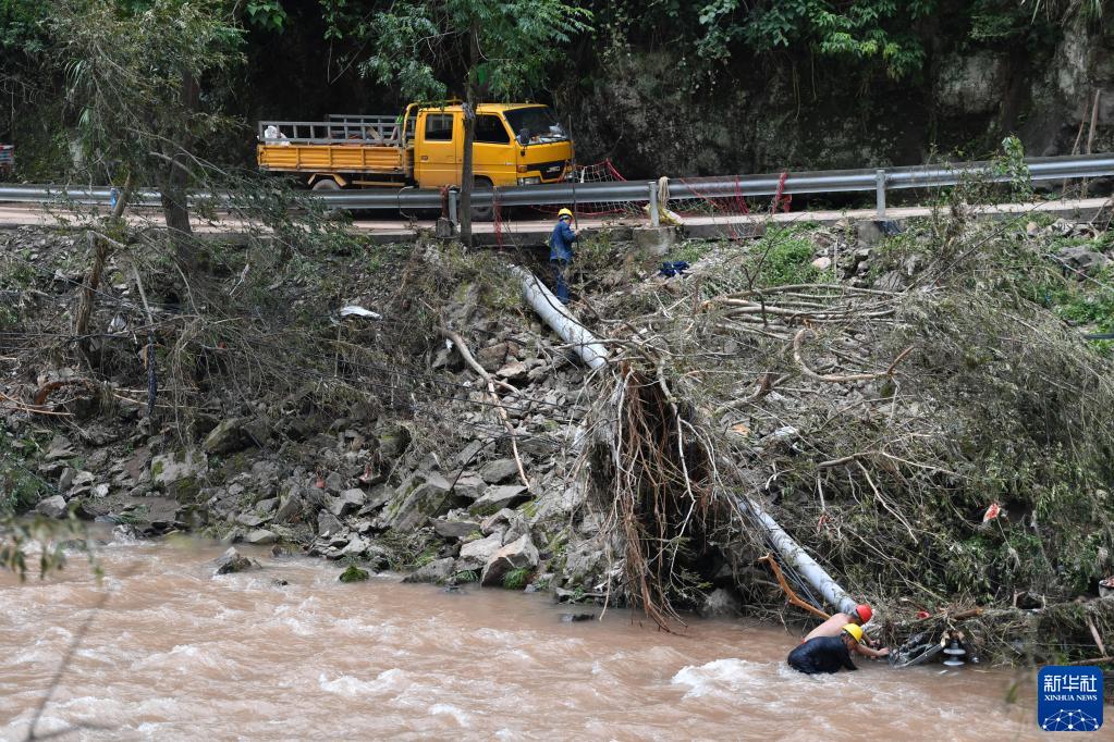 7月2日,工人在湖南省湘西土家族苗族自治州古丈县岩头寨镇草潭村抢修电力设施。