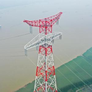 7月2日拍摄的凤城—梅里500千伏长江大跨越输电铁塔(无人机照片)。