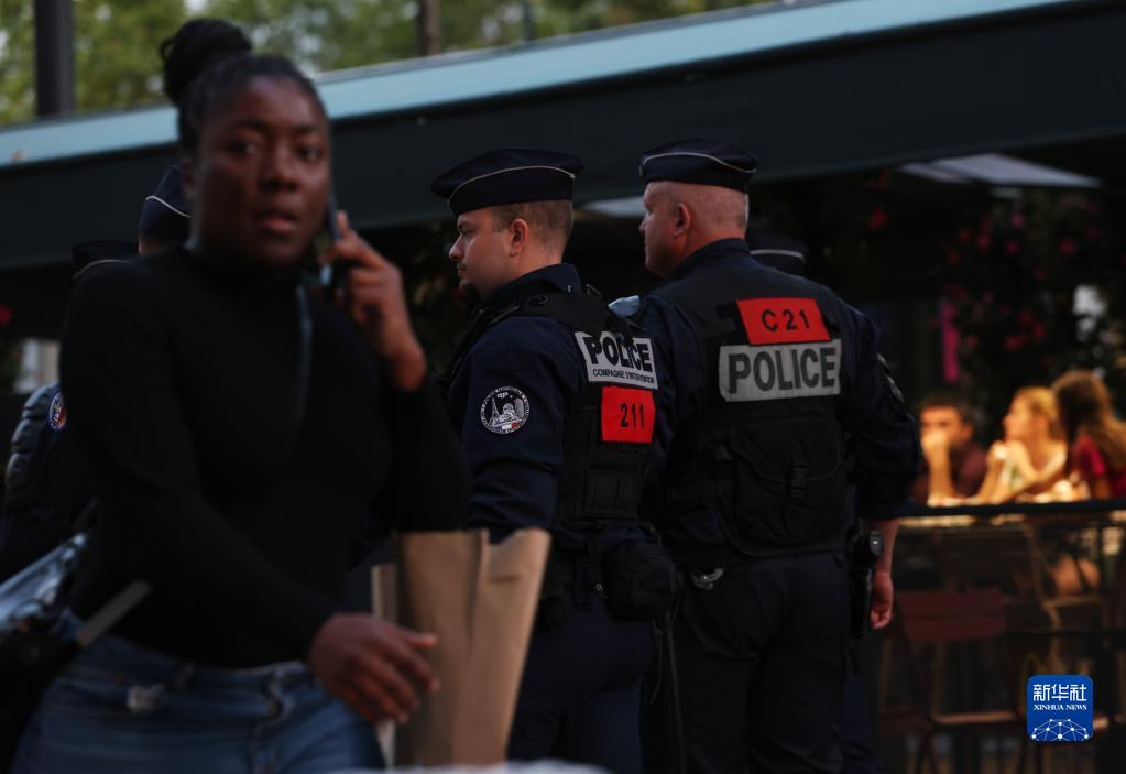 7月2日晚间,警察在法国巴黎香榭丽舍大道上巡逻。
