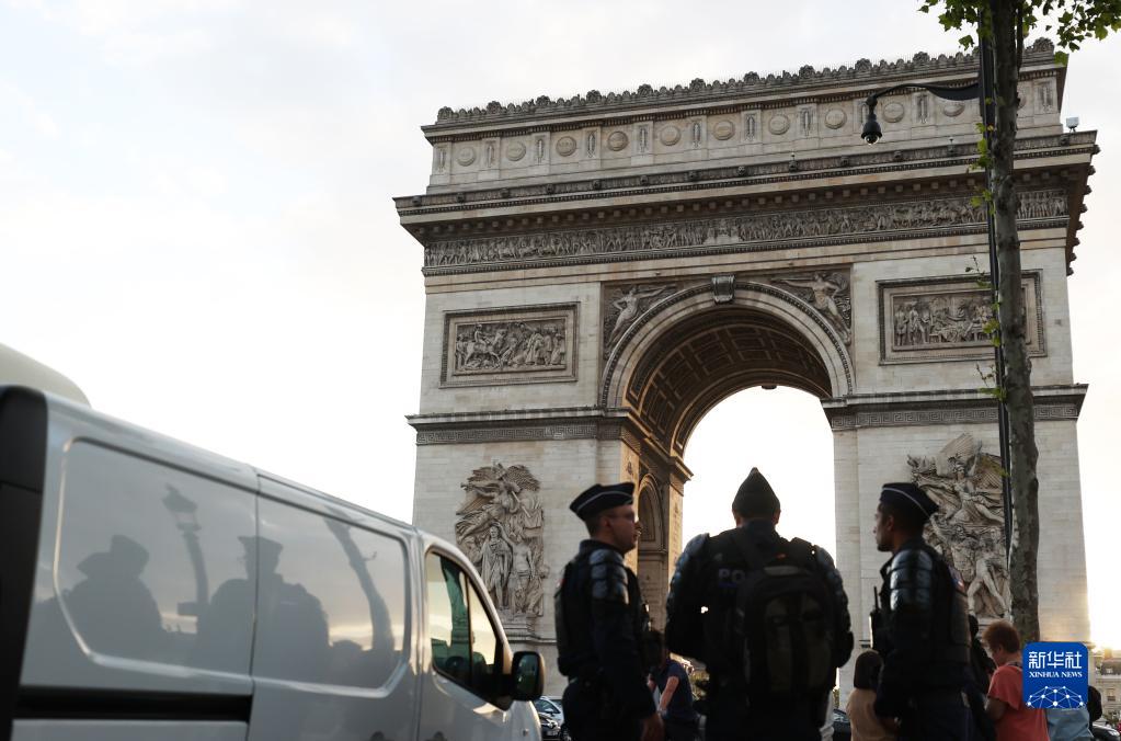 7月2日晚间,警察在法国巴黎凯旋门附近巡逻。