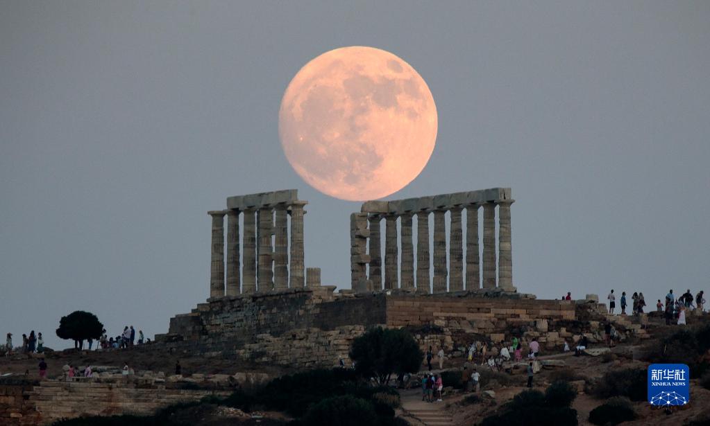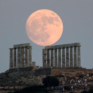 7月2日,一轮满月出现在希腊苏尼翁的海神庙遗址上空。