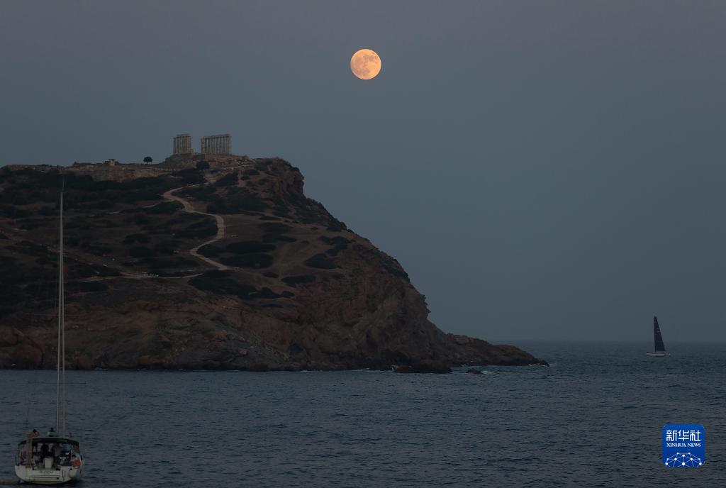 7月2日,一轮满月出现在希腊苏尼翁的海神庙遗址上空。