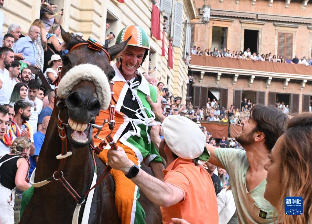 当日,锡耶纳赛马节在意大利托斯卡纳大区古城锡耶纳市中心的田野广场举行,吸引了众多观众前来观看。锡耶纳赛马节是世界闻名的意大利传统民间活动,始于1656年,每年7月2日和8月16日举行两次。