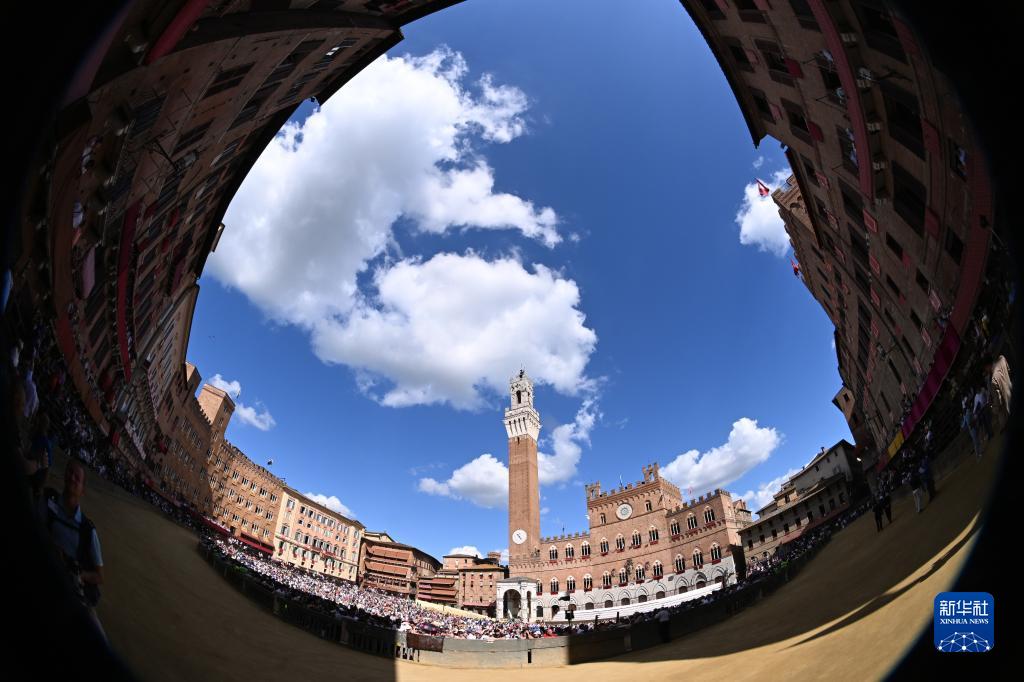 当日,锡耶纳赛马节在意大利托斯卡纳大区古城锡耶纳市中心的田野广场举行,吸引了众多观众前来观看。锡耶纳赛马节是世界闻名的意大利传统民间活动,始于1656年,每年7月2日和8月16日举行两次。