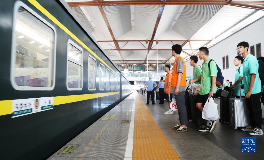 7月3日,“内高班”学生在苏州火车站站台上排队候车。