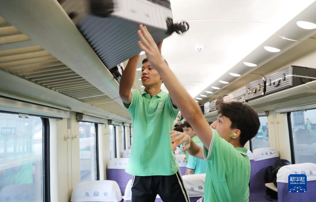7月3日,“内高班”学生在苏州火车站登上Z40次列车。