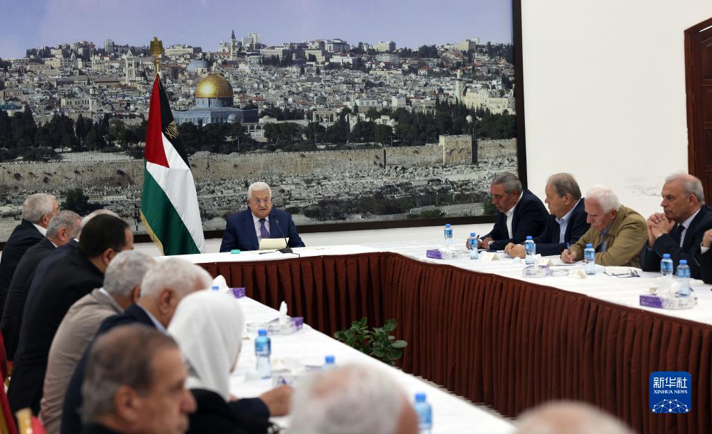 7月3日,巴勒斯坦总统阿巴斯(后中)在拉姆安拉召开巴领导层紧急会议。