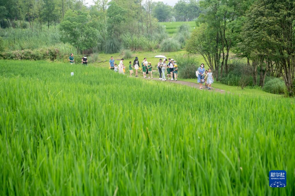 7月3日,家长和孩子们在广阳岛的“生态研学课程”上现场感受广阳岛的生态文化。