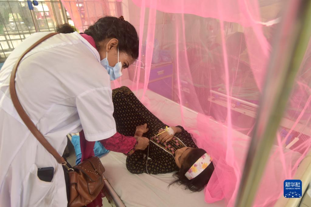 7月4日,在孟加拉国达卡一处医院,一名医生为登革热患者治疗。