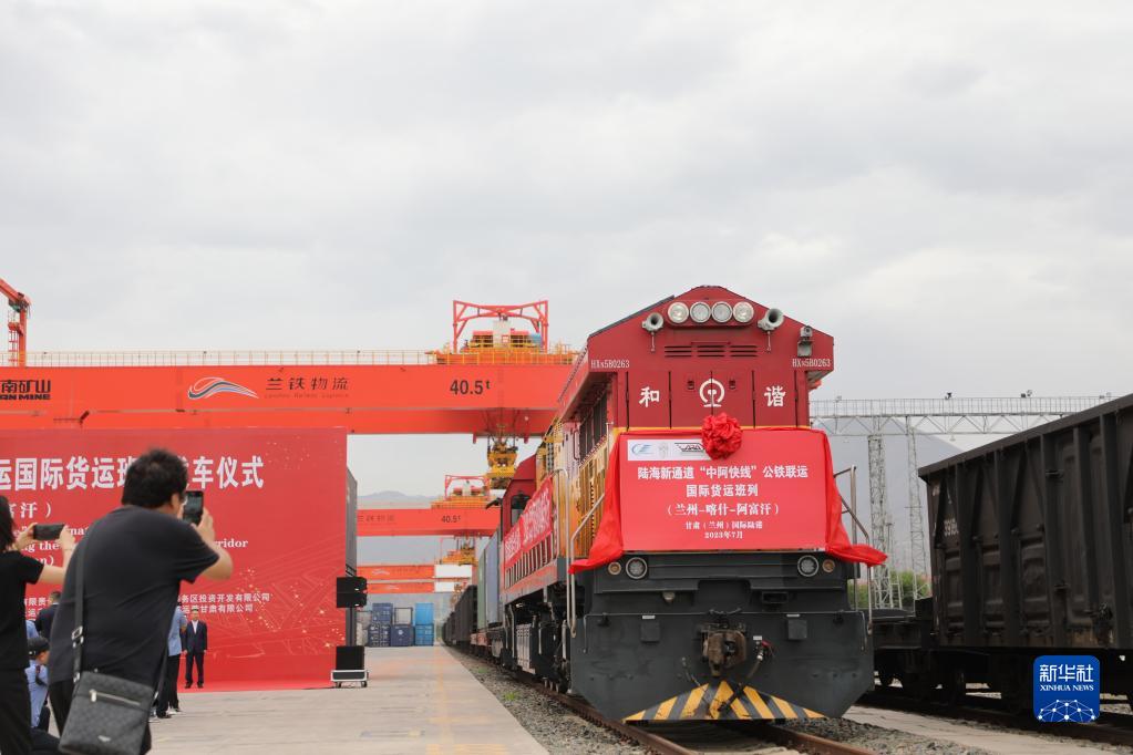 7月5日上午,陆海新通道“中阿快线”公铁联运国际货运班列从兰州东川站鸣笛出发。
