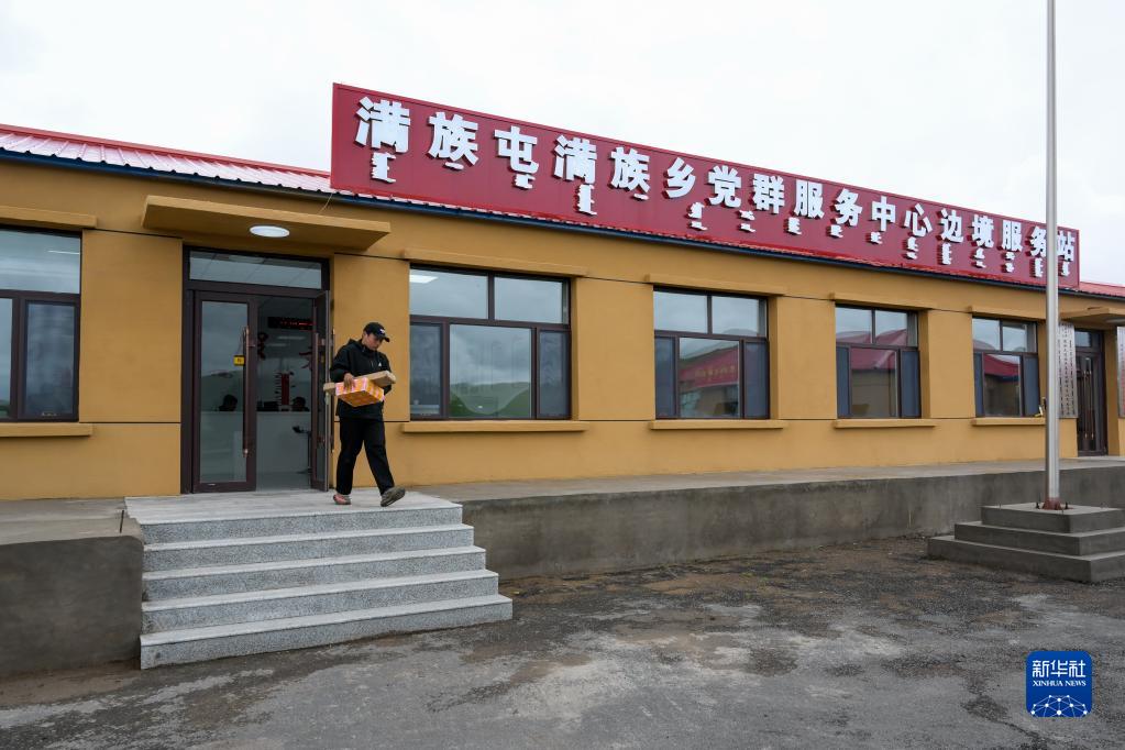 7月5日,在内蒙古兴安盟科尔沁右翼前旗满族屯满族乡党群服务中心边境服务站,牧民取完快递后离开服务站。