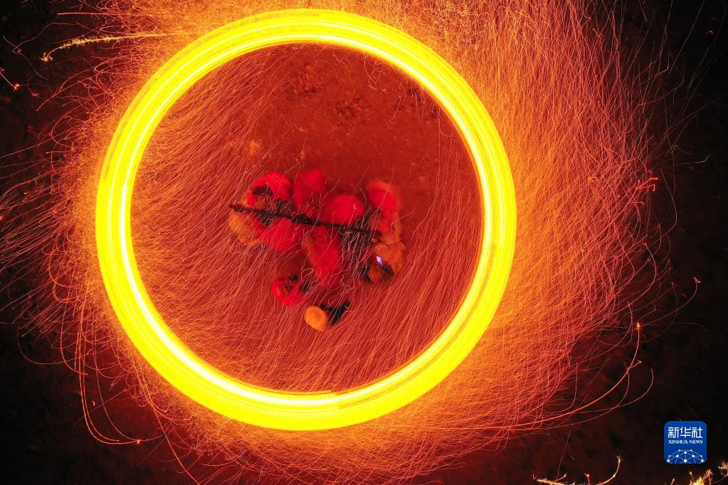 “抡花”是河北省滦平县一项传统民俗,已被列入国家级非物质文化遗产名录。表演时,几名民间艺人将木炭和碎铁片一起放到挂在花架上的花筒中燃烧,再合力抡起花架,使花筒内升温并向四周甩溅铁花,形成一圈圈光线交织的光环,景象壮观。