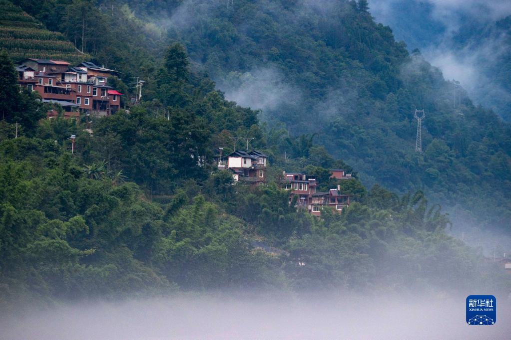 “国道之行 从雪山奔向大海”报道组沿着219国道来到云南怒江州贡山县。傍晚时分,一层薄雾飘荡在怒江的江面上,仿佛一条白色的薄纱。