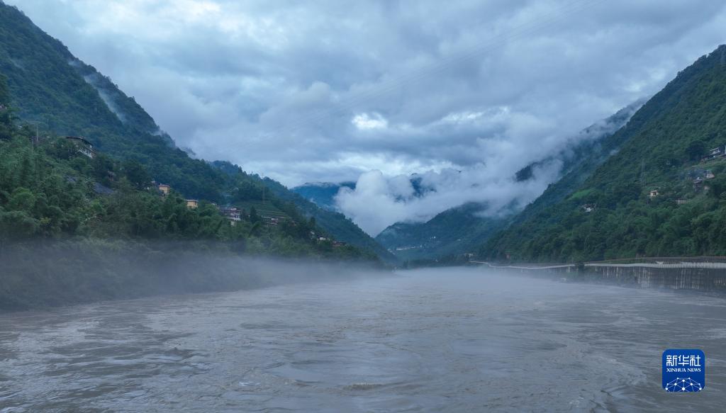 雾气缭绕的怒江江面(7月4日摄,无人机照片)。