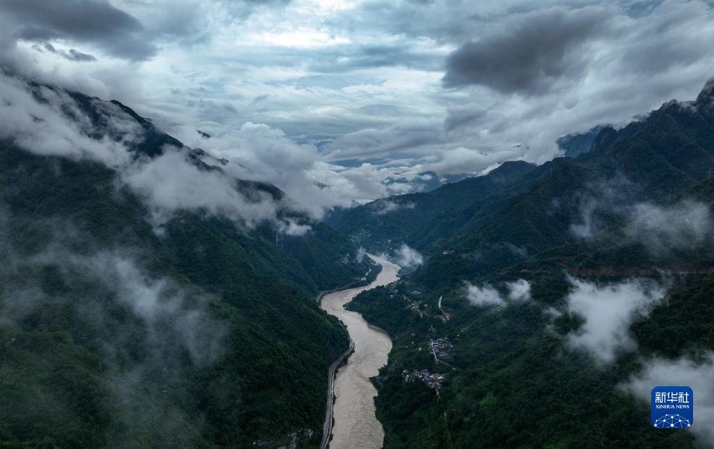 从空中俯瞰云雾间的219国道云南怒江美丽公路段(无人机照片,7月4日摄)。