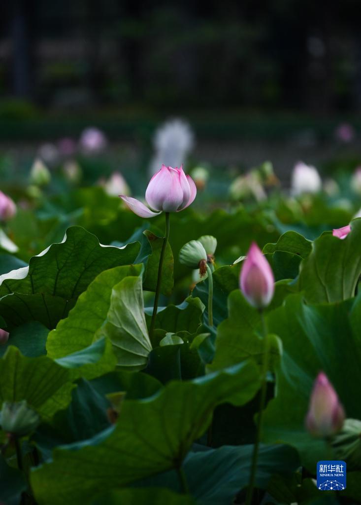 7月5日,浙江省建德市大慈岩镇里叶村荷塘里含苞待放的荷花。