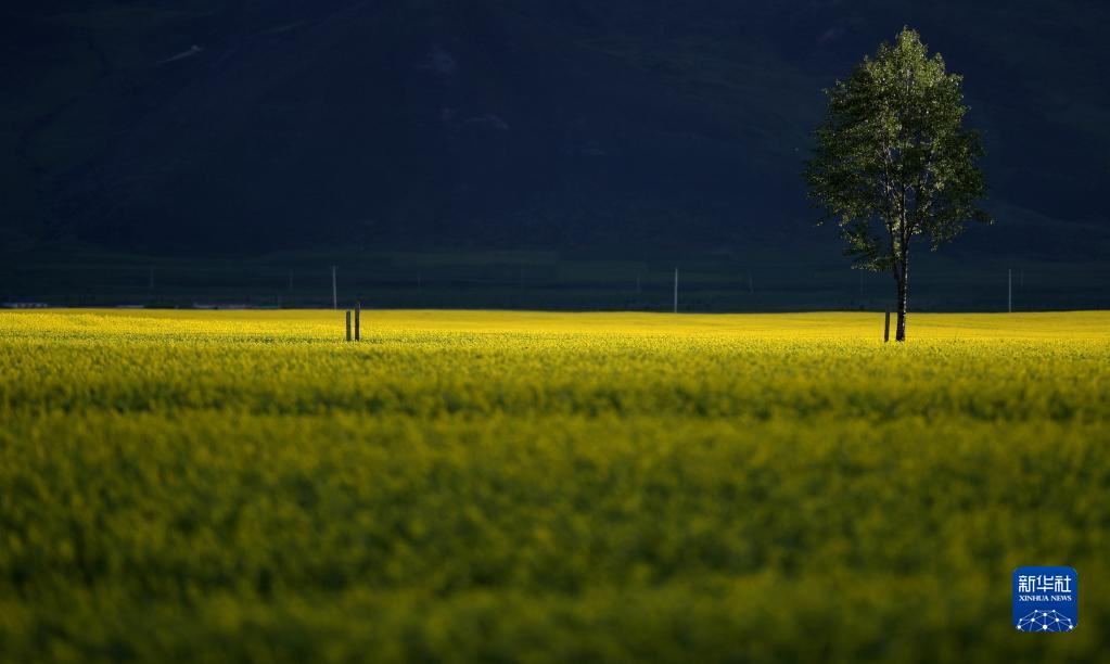 夏日,在位于祁连山腹地的青海省海北藏族自治州门源回族自治县境内,油菜花竞相绽放,花海、雪山、草原共同组成色彩斑斓的祁连山夏日画卷。