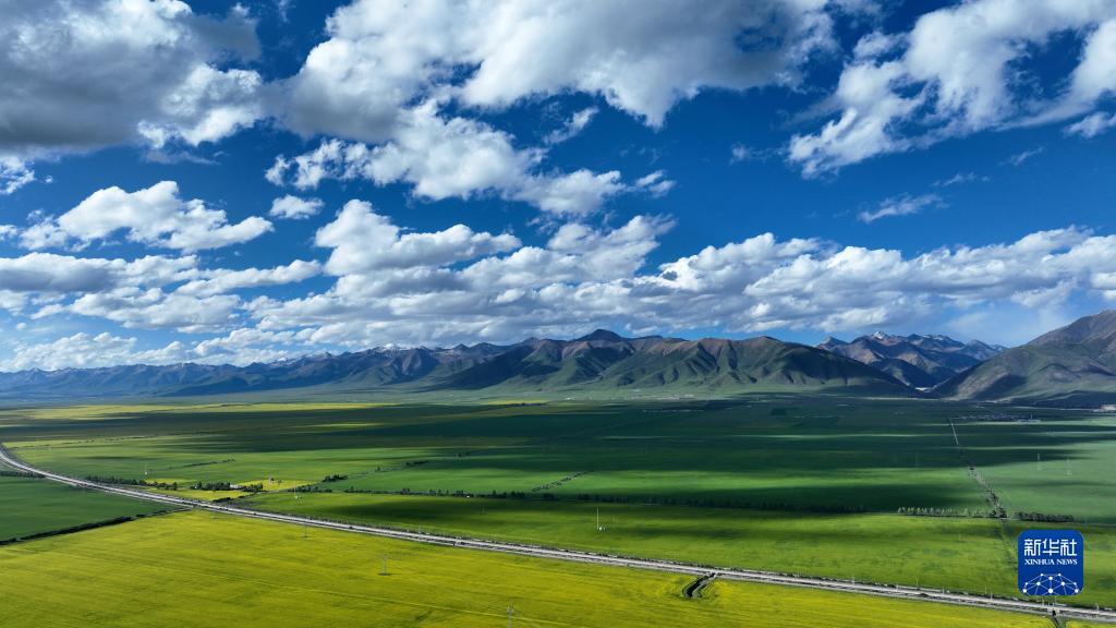 夏日,在位于祁连山腹地的青海省海北藏族自治州门源回族自治县境内,油菜花竞相绽放,花海、雪山、草原共同组成色彩斑斓的祁连山夏日画卷。
