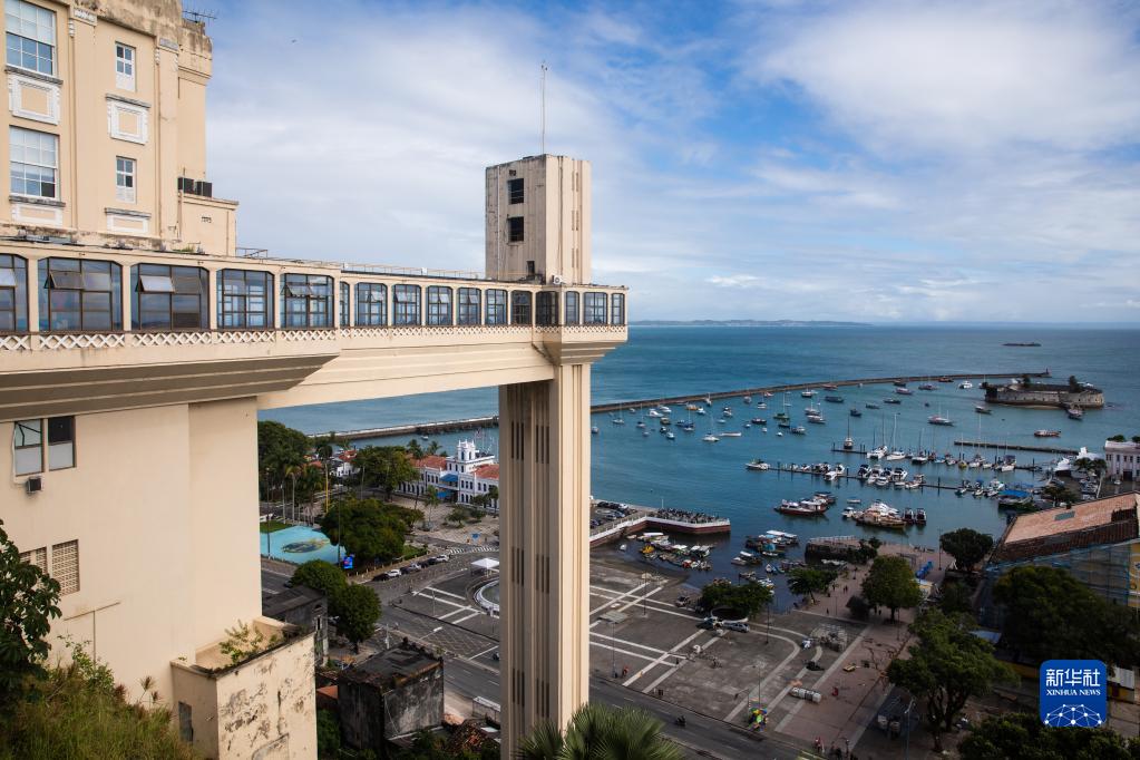 这是7月5日在巴西巴伊亚州萨尔瓦多拍摄的连接城市上下两部分的拉塞尔达电梯。